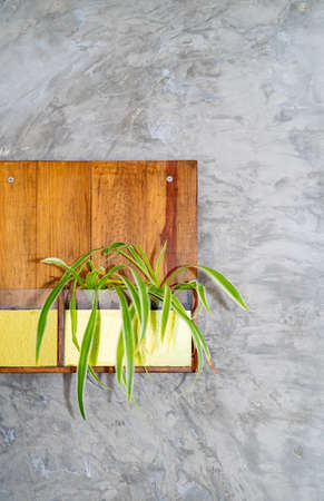 Modern design wooden wall hanging mini planter on the wall. Indoor spider plants.