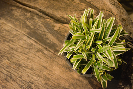 Spider plant on old wood plank background