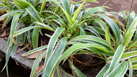 Nature background of plant, Chlorophytum comosum, spider plant, Copy space, Selective focus.
