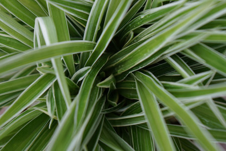 Green and white leaves of spider plant top view