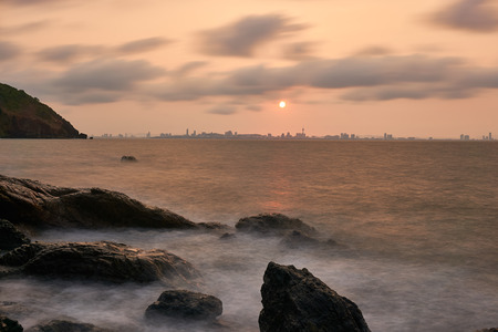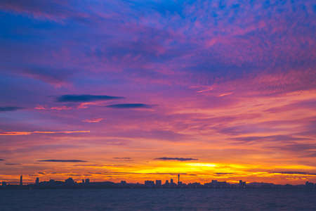 Sea scape and city scape with beautiful sky at golden hour time.