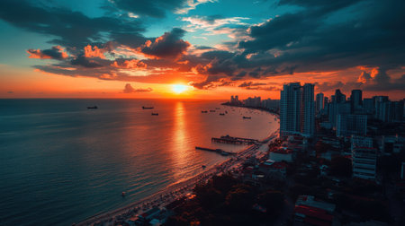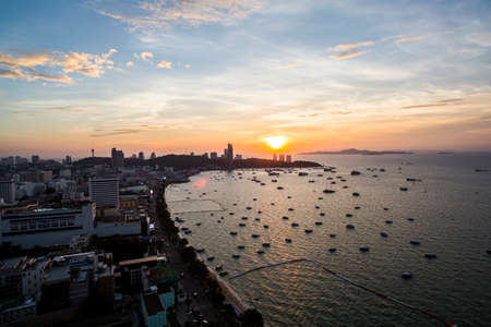 Aerial view Sunrise at Pattaya beach in Thailand.