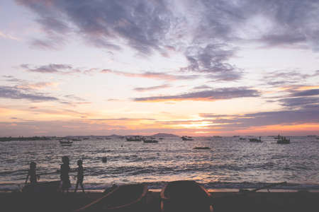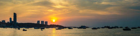 Panorama of Beautiful sunset at Pattaya beach in Thailand