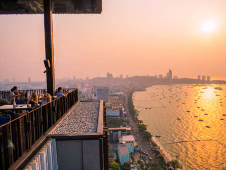 PATTAYA, THAILAND - FEBRUARY 4, 2018: View from the terrace of the Hilton Sky Bar at sunset.