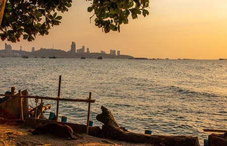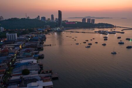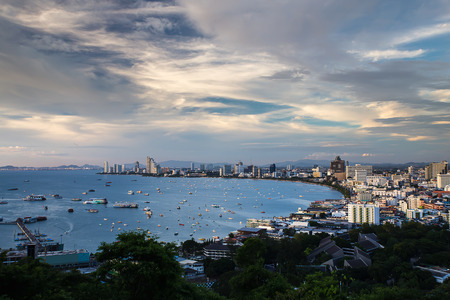Cityscape and landscape in sunset time, Pattaya, Chonburi, Thailand. Pattaya city is famous about sea sport and night life entertainment in Thailand.
