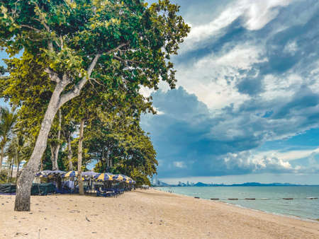 PATTAYA, THAILAND - October 25, 2021 : Pattaya beach before opening to tourists after the Coronavirus COVID-19 epidemic is less October 25, 2021 Pattaya Thailand.