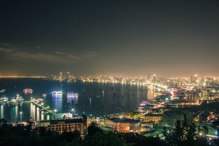 Cityscapes of pattaya in the night with colorful and the city is business growth.