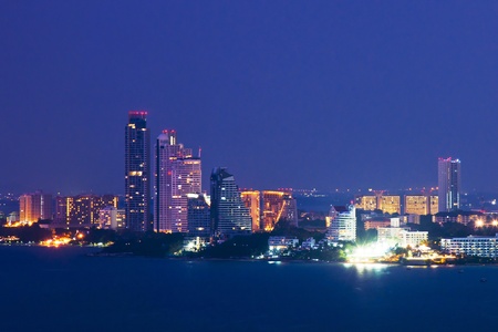 Pattaya city skyline dominating the coastline at twilight in thailand