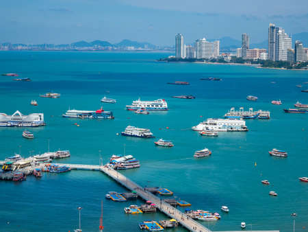The Bird eye view Balihai pier of pattaya city, Thailand