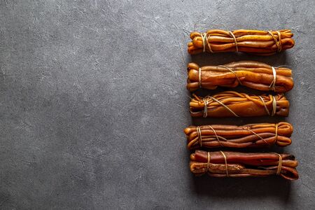 Pacific chilean australian edible dried seaweed COCHAYUYO on concrete gray background.