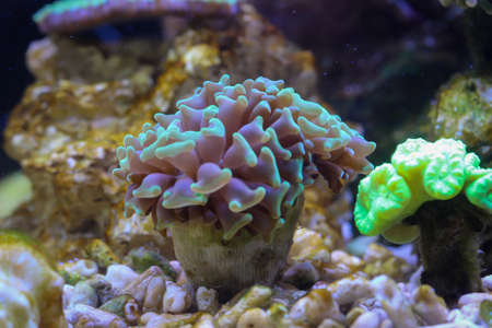 A close-up of a coral in an aquarium, saltwater aquarium.