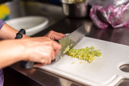 Chef cutting fresh and delicious vegetables for cooking