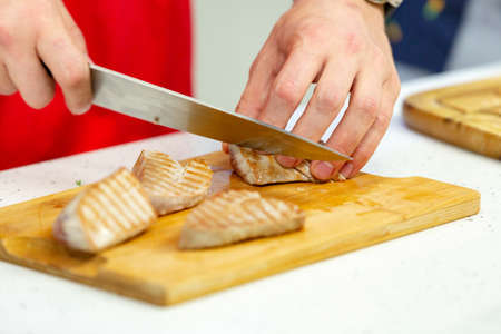 man cooking tasty food for french dinner party