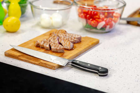 Cutting raw meat for cooking stews and barbecue