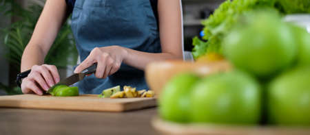woman cut vegetables on the table at home