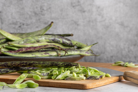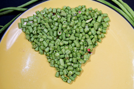 A fresh examine vegetable beans ready for cooking close up shot at home