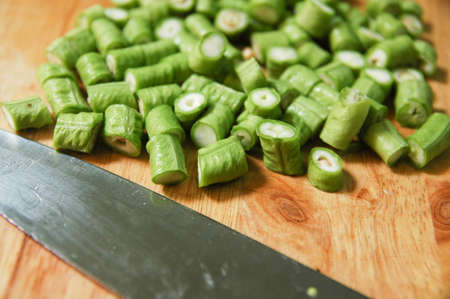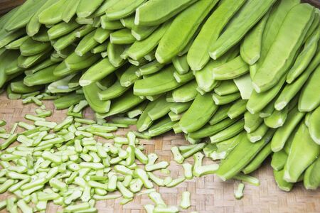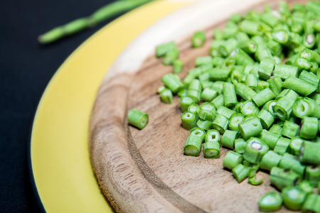 Fresh sliced cowpea on wood table.Healthy organic vegetable food