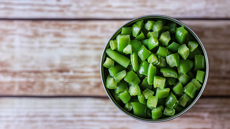A top view of a can of diced green beans, neatly packed and ready to eat