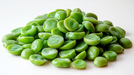 large green soft and not yet ripened grains of freshly harvested beans, closeup of cut food products