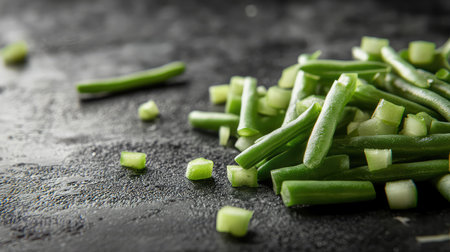 A vibrant pile of freshly chopped green vegetables, showcasing the natural texture and color, perfect for food preparation and culinary use.