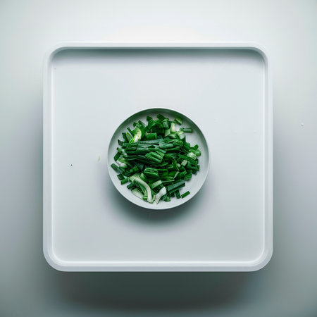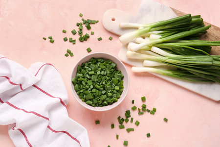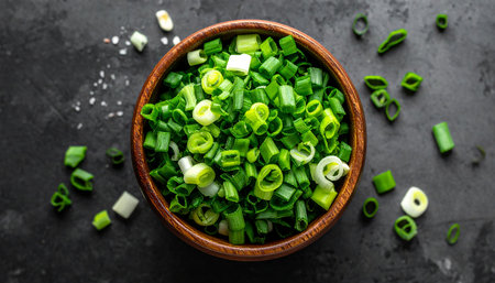 This image showcases fresh green onions and sliced vegetables, perfect for culinary presentations, healthy meals, and vibrant food styling.