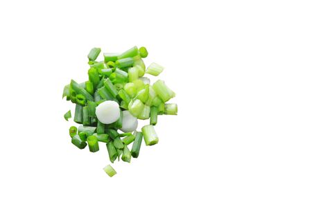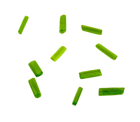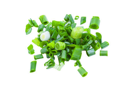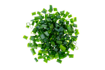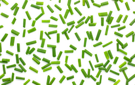 Pile of slices of fresh chives isolated on white background. Studio Photo