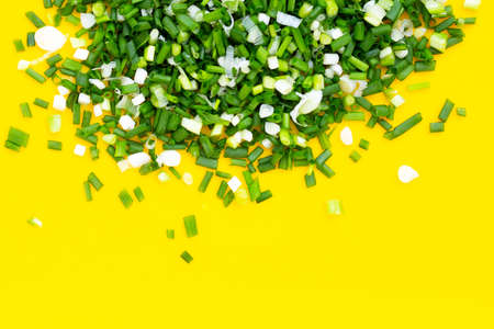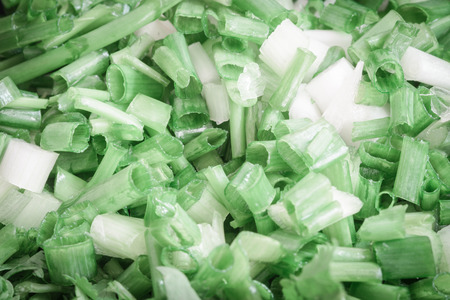 Sliced green onion.Finely chopped circles of bright green onion feathers.Green onion background.Chopped onion.