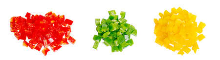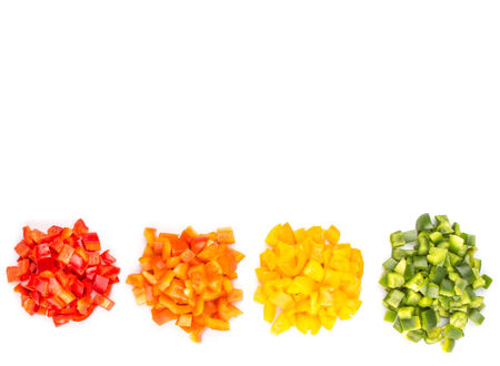 Heaps of chopped colorful capsicums over white background