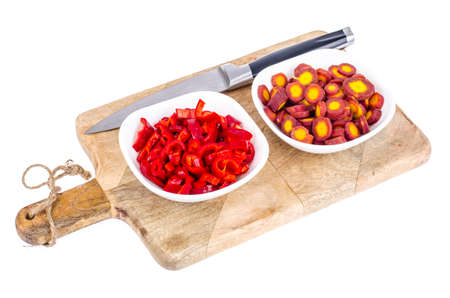 Sliced raw paprica and carrot for vegetarian dish.