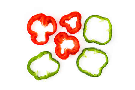 Slices of bell pepper isolated on white background. Top view