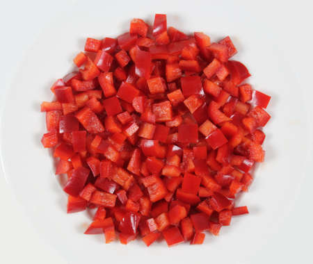 chopped red bell pepper and cucumbers, background