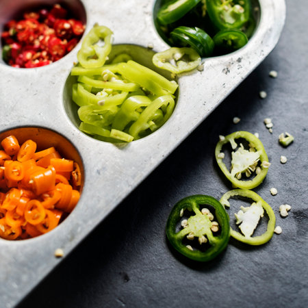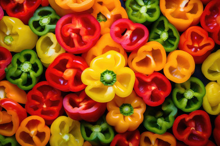 A stunning arrangement of sliced bell peppers showcasing vibrant colors and textures. Perfect for culinary inspiration and healthy cooking ideas.