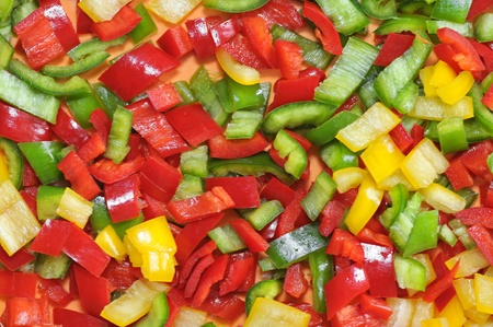 Mixed sliced multi colored sweet bell pepper background