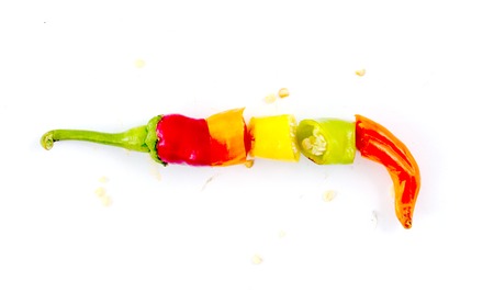 Bird chili or Thai chili sliced isolated on white background