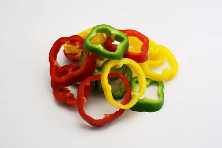 Slices of green, yellow and red bell pepper, for backgrounds or textures