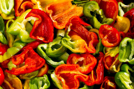 Pieces of red and green pepper, abstract vegetable background