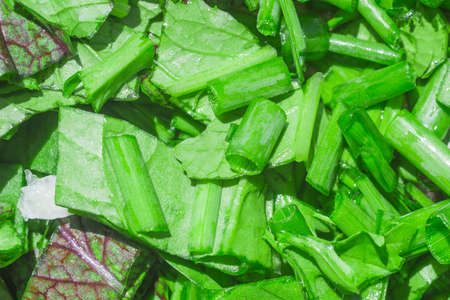 simple food ingredients concept, chopped swiss chard leaves freshly picked from the garden