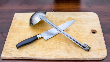 Knife on a wooden chopping board - Knife on a board.