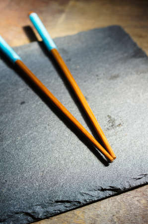 Chopsticks for sushi or other Japanese or Chinese food on a brownstone table. Asian chopsticks