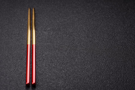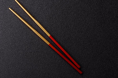 Wooden sushi sticks on a dark concrete background. Japanese Asian cuisine