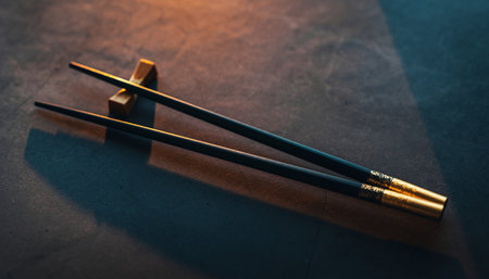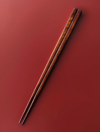 Elegant Chopsticks Resting on a Vibrant saturated Red Background