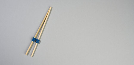 Two pairs of traditional bamboo sushi sticks, a banner with a place for text on the left