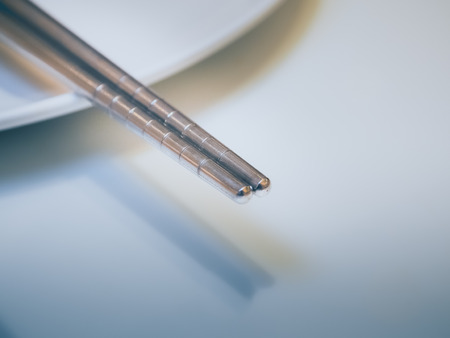 Stick or chopstick Japanese or Chinese for eating sushi, rolls. Metal chopsticks for Asian food