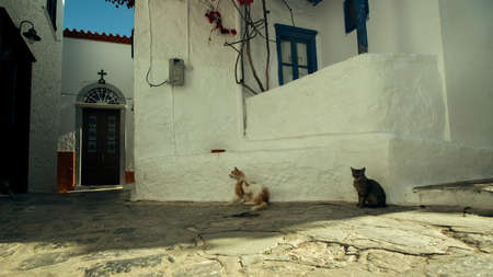 Street cats on the streets of the island of Hydra, Greece.