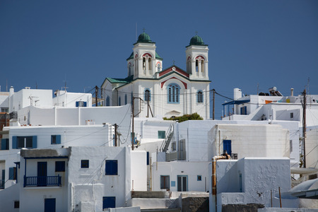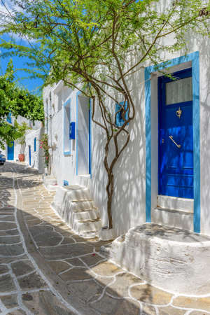 Typical architecture and white houses in Paros or Parikia, Cyclades islands, Greece