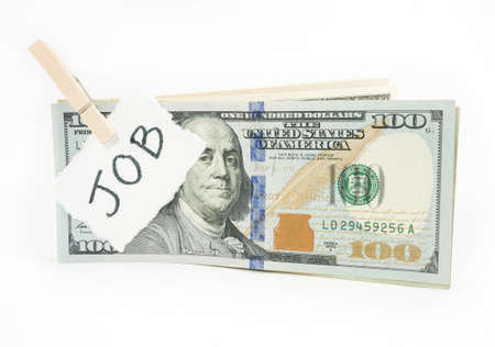 Jobs. The inscription cut out of dollar bills on a green background. Offer, job search. Business. Finance.