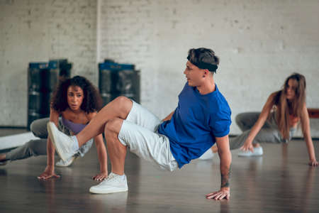 Hip-hop class. A teacher showing new dance routine to his students