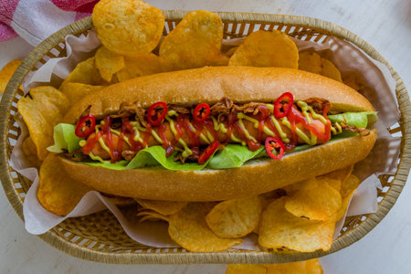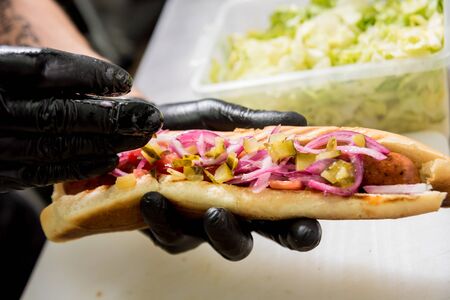 fresh fast food hot dog close up