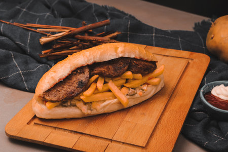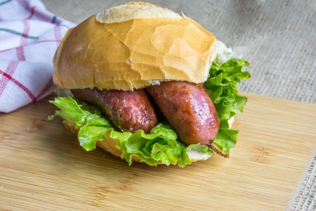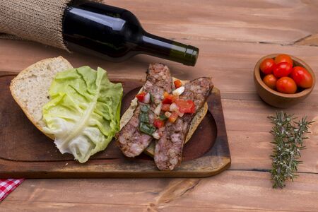 Traditional South American sandwich know as choripan
