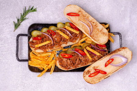 Pork barbecue sandwich with onion and tartara sauce